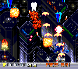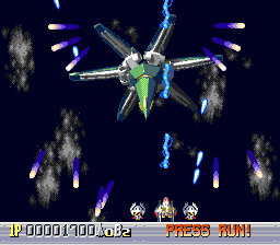 It passes unnoticed for a while, but partly, the player is afforded the chance to take all this in because Sapphire is one of the slowest titles ever created in the genre. This is the first failing of the game. There is one pilot who is the standout "fast one" yet even she hardly matches a Vic Viper sped up a couple of times, to borrow an example from Gradius. Her three friends float across the screen at a snail's pace and the player is not given the opportunity to get any of the four to move any faster. This could be overlooked were it not for the fact that Sapphire can also feel less than perfectly laid out. It is hardly careless, and rarely if ever unfair, per se. However, the game comes across as a title designed for a tate screen squashed down into half its normal playing area with too little thought for how it plays after that. With the slower ships, the slightest lapse in concentration, even on the first level, can see the player drifting helplessly into enemy fire; it barely counts as bullet patterns but the projectiles are often so large, and movement so restricted, that the game seems to be dependant on pattern memorization all too quickly. Add to this Psikyo's trick of weapon powerups (dropped from kills) bouncing off an invisible wall an inch above the bottom of the screen, continually snatched out of reach. On top of that, powerups cycle through three possible weapon progressions, ergo chasing them very slowly around the screen as you attempt to slide out of the way of enemy fire can often be frustrating. Showboating seems sometimes not worth the hassle, to put it bluntly. Your ship can make use of a powered up attack, netting you bonus points if you charge it up and take out a number of enemies in sequence, but the slow pace and nature of the attack waves means it can be a great deal of trouble for little or no reward. Is Sapphire worth the high prices it commands? If you care, then no, likely it isn't. Without question it is a far better than average vertical shooter, with the capacity for long-term play and attempting to better your score that any decent title in the genre holds. But there are better things to spend your money on in the field. All the same, Sapphire is an amazing technical showcase for the format and - artistically at least - a beautiful piece of design which still holds up today; it is a touch more for the collector than the enthusiast, though. |