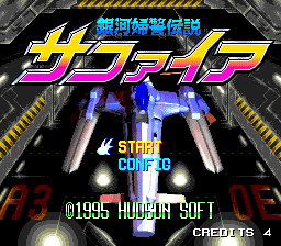 The business of shoring up a console's life expectancy with hardware addons is not without risk, this being the same now as it ever was. Sega got it wrong with their 32X for the Genesis, and consumers voted with their feet. NEC, on the other hand, kept revising their PC Engine console with greater success. Importantly, NEC gave people more reason to buy their upgrades - the software backing them up contained several standout titles where Sega gave the public far too many risible games comprising a great deal of low quality FMV and little else. Sapphire (Hudson, 1995) is one such standout title, requiring a CD-enabled PC Engine and the final expansion to the machine, the Arcade Card. Unsurprisingly, it's a vertically scrolling shoot-em-up - NEC's machine had a great many of them - and the nuts and bolts of it are not any different from what one would expect for having the extra hardware to draw on. Still cutscenes set out the token plot, a future where special operatives pursue the enemy across time and space (this explaining why the theme skips from SF to fantasy and all points in between). There are four of these heroines to choose from, with the usual tweaks to performance and weapon selection to set them apart from each other. Pick a pilot, launch yourself upon the first level, and even today Sapphire carries something of an impact. Strong colour palette, large, well-defined sprites for all the low resolution and... polygons? Textures? Morphing? The effects stand out in comparison to what the competition was doing at the time because all too often titles like Starfox on the SNES (for all their undoubted excellence) looked suspiciously like demos of the new techniques. Plus they still carry weight today because they remain so well integrated with the standard 2D backgrounds and sprite manipulation. Aesthetically, Sapphire feels beautifully complete, if a little rough and ready; the first level is an amusingly blatant lift from BladeRunner, and the second feels perhaps too much of a tribute to Konami's Castlevania franchise. But though the technical side of it does nothing for the gameplay, it certainly doesn't hurt. Bosses spin and flip in the third dimension, flail their arms, belch fire, whatever; there is a solidity to it all and a presence that many shooters in the 32-bit era and beyond never managed, for all their flash and pyrotechnics. Considering the PC Engine is basically a souped-up 8-bit machine, this is no mean feat. The music deserves a mention, also, given this too takes full advantage of the platform. Many of the CD titles had hugely entertaining music, and Sapphire ranks among the best. Bruising J-Rock with jackhammer drum machine programming, it happily outranks even Lords and Gate of Thunder, making far better use of diverse instrumentation than Gate and varying the composition more often than Lords of Thunder.