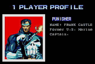 Over time, Capcom has used Marvel characters to create arguably the best American comic-book character based videogames in history. They've used Marvel characters to make successful fighters like X-MEN - Children Of The Atom, Marvel Super Heroes, and Marvel VS game like Marvel VS Capcom 2, as well as great side-scrolling fighters like X-MEN - Mutant Apocalypse, The Punisher, and Marvel Super Heroes - War Of The Gems. Although X-MEN - Mutant Apocalypse and Marvel Super Heroes - War Of The Gems were great titles, The Punisher was a dream come true. The game was a dream come true ultimately because out of all the Marvel characters that Capcom could have chosen to make a game with, they chose the Punisher. It was absolutely amazing to see that Capcom, the best Japanese developer, had chosen my favorite American comic-book character to make a game out of. My jaw dropped, and my eyeballs nearly fell out of my skull and onto the floor when I first saw the game. To say I was shocked is an understatement; I just about shit my pants when I saw Capcom's name together with the Punisher. To see the Punisher designed and animated in the same fashion as other hit Capcom games like Street Fighter II and Final Fight was nothing less than a treat. Capcom, the developer of the awesome Street Fighter series, had decided to make a game out of the best Marvel Comics character ever. Combining their own signature style of quality animation with their polished side-scrolling fighting formula, and with Marvel's best character, Capcom made one impressive side-scrolling fighter. |