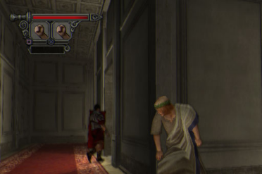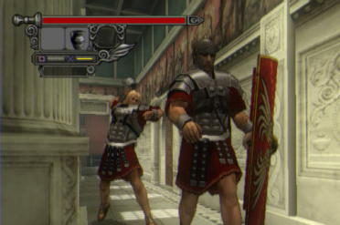 The game starts out with the convict-turned-gladiator, hard-as-nails Agrippa. We're talking the kind of dude that eats lightning and shits chains. He comes back from defending his country not only to find that his father is being put away and executed for Caesar's assassination, but that his mother is guilty by association and to be put to death accordingly. His mother is murdered in his arms (literally), and he goes from pissed to fucking pissed. Agrippa vows not only to have vengeance, but to save his father while doing so. He's not alone, though, and gets help from his loyal friend Octavianus, and a mysterious gypsy named Claudia. But what they uncover in the process is a conspiracy traced back to the upper echelons of the Roman empire itself. The intriguing story is enough to attract any fan of the Metal Gear or Onimusha games, and by the end of the game you really come to feel for Agrippa. I say that because unlike other games (where the main character is already developed), we see the gradual development of Agrippa through the struggles he encounters on the path to his father (and revenge). At the beginning of the game we see an independent, unbreakable soldier, but as the game progresses, we see a desperate man, dependent on others as his life hangs by a thread in the balance of the forces that be. SOR's gameplay is all over the place, and those who like sporadic, ever-changing objectives will like this game a lot. This game is played in two levels from completely opposite ends of the spectrum; aggressive on one hand (Agrippa), and passive on the other (Octavianus). Agrippa leaves piles of bodies and lakes of blood in his wake, while Octavianus leaves trails of paper and bodies tucked in corners. Everyone says this game is like Metal Gear Solid 2 because of the stealth elements in the parts where you play as Octavianus, but that parallel is off. There are some definite similarities in the execution of the stealth parts (like sticking to walls and strangling enemies from behind), but it's more like a mix between Onimusha and Haunting Ground. Why? Because in MGS2, Solid Snake is a hardened soldier armed with mad skills and conventional weapons (in case things get ugly), who can take a bullet. But in SOR, though, we have two main characters (Agrippa and Octavianus), and only one of them is a hardened soldier (Agrippa). The other one (Octavianus) isn't a hardened soldier armed with mad skills or conventional weapons (he has virtually nothing), and he can barely take a shield tackle (let alone a bullet). In fact, unlike Agrippa and Solid Snake, he has no lifebar (so he dies in one hit), and he can barely attack enemies directly (his most useful attacks are from behind). While Agrippa's out caving heads in with maces, Octavianus is out throwing flour in guards' faces and rats at waitresses. No, really, this is how he fights. When someone gets in Agrippa's way, he solves it by bludgeoning them to death with anything he can get his hands on, but Octavianus solves problems more quietly, and uses things like rope, honey, and even banana peels in some parts. There is one part where he uses a torch to catch these two idiots ablaze, but that's more comical than anything else. Aside from smashing vases over the heads unsuspecting guards, or making them slip and fall on honey, he is pretty much defenseless. Because he can't take a hit or attack nearly as well as his counterpart Agrippa, there's a lot of running going on, and this reliance on running (with no life bar) is a lot more like Haunting Ground than Metal Gear Solid 2. Climbing on top of bookcases and hopping into barrels (to avoid being seen) echoes the evasion style of Haunting Ground (few weapons and no fighting skills, but tons of clever hiding). Even the distribution of fighting and sneaking is different in SOR. In MGS2, even though fighting and sneaking are bonded as one, the emphasis is more on sneaking; in SOR its just the opposite. Agrippa can creep and duck behind crates and stuff, but the parts where he actually gets to use it are rare (since he's pretty much always surrounded by multiple assailants). The arena battles make-up the bulk of the Agrippa parts, though, and it's what the game owes its variable gameplay to. Most of them are just all-out assaults on anyone who gets in the way (until nobody's left standing), but then you got ones with objectives like capturing flags, saving hostages, holding the fort, and even chariot races! You heard right; brutal chariot races like you see in the movies (complete with spiked wheels, whips, and all). There's even a swashbuckling ship battle part at the end of the game, and you do other cool stuff like burning ropes to bridges and throwing rocks through doors. Between these chapters are underground fights where you can earn extra points (like bonus stages). These and a few other parts take place outside of walls of the arena, but most of the action takes place within its walls. Agrippa dispatches opposition in a variety of different ways, with a variety of different weapons, in a variety of different ways. When you start out, the weapons are standard-issue Roman swords and other assorted weapons, but as the game progresses you get flaming maces, giant axes, flame bows, and spears. This game's all about weapons, and there's pretty good variety in the selection. The coolest weapon in the game is arguably the Magnus Sword; a giant sword of brilliant gold and silver, capable of severing with the greatest of ease. Different types of shields can be acquired from downed enemies, as well, for that much-needed defensive edge during heated battles. With all this stuff, Agrippa has the means to really clean house, but the bloodspill always comes to an inevitable stop, since each weapon has a short lifebar that limits its use (and really hurts the game's momentum). |