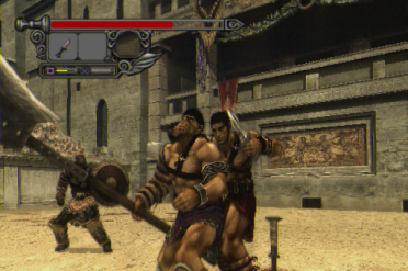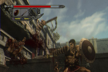 But that's not all; it gets worse. They made it so that enemies could snatch your hard-earned weapons right out from under your nose. That's right. It's already hard enough to keep a weapon in your hand (thanks to the short lifebar), and to make it worse some bastard comes and takes it before you can even get to it? Cheap. Fucking, cheap. It really takes a lot to get the crowd to throw out weapons, and when you finally get them to throw out the good ones, they always get taken. It's fucking terrible, and wrestling your weapons back is unpredictable, too. You'll be saying stuff like, "C'mon! Get that mace, motherfucker!" or "No, no, no, you fucking bastards! Stay away from my shit, man!" a lot. The game could have been more fun without this. Special thanks to the asshole who thought this was a good idea; because of you I almost have a coronary when I play this game. But in the short time you actually do have a weapon in your hand(s), you can cut limbs and heads clean off, and even cut dudes completely in half. Blood geysers spray from stumps when extremities are lost, and as a result, affect the performance of the victim(s); cut an arm off, and your adversary will slow to a crawl and be limited to using one-handed weapons (like the knife). Exploiting this becomes crucial when fighting against multiple foes (disable to even the odds), and especially against big guys who wield two-handed weapons (arm-cut for the win). Amidst the bloodshed, the brutality and/or candidness of your battle performance is highlighted by descriptively-entertaining, onscreen commentary (similar to the Devil May Cry games). You can do several during battle. For example, you can start by making a "Gladiator's Booty" call for a weapon, stop and smell the flower(s) by cutting a dude in half with one swipe for a "Full Bloom," kick his friend off a ladder to make him "No Super Man," and then celebrate with some "Meat Pudding" by cutting their other friend's body in half after severing his arms and head. And for the vegetarians out there, "Meat Pudding" can be substituted with a "Red Radish" or "Juicy Tomato." As a bonus, true fans out there can even pay homage to Capcom's history with the "Cut Man" finishing move (with a little help from a giant axe, of course)! There's a method to this madness, though, and this commentary serves a purpose in determining the amount of points you get (earned in the form of Salvos, which are basically achievements based on brutality). And when the going gets tough (or when the weapon selection gets dry), you'll need enough Salvos for the crowd to throw out the good stuff (like the Magnus Sword and/or Grand Mace). As of this writing, though, I can't get certain decap and/or limb-specific Salvos because the severed parts seem to miraculously reappear. I've played both versions, and unless my memory fails me, even with adjustable violence and gore (via the option menu), the Japanese version appears to be awkwardly censored. Salvo names appear to have been changed, too (for those of you who were wondering where the "Full Bloom" and "Red Radish" Salvo names came from). But even in its censored Japanese form, SOR is still pretty violent. SOR's graphical polish doesn't just lie in its vivid expression of violence, though... Granted, Capcom used the "Emotion Engine" to create the blood effects from the various sustainable injuries, but they also used it in manipulating the profound facial expressions of the characters. Despite all the pouring blood and guts, the facial expressions are incredibly realistic. At the beginning of the game, we see three different sides of Agrippa in a single scene. Grateful in his mother's warm embrace, overtaken by despair as she collapses from a sword in her back, and smoldering with rage upon discovering who put it there. We see short, emotional glimpses of Agrippa's character through similar facial expressions; one after a bloody coliseum bout, and the other when he eats an apple. It may seem like he's just eating an apple, but it's actually one of the parts where Capcom lets you see the humane side of Agrippa. It's actually one of my favorite parts of the game! Unbelievable texturing and detail was put into SOR, from its solid cast and their environments, to their weapons and armor. Everyone in this game looks pretty cool; heroes, piss-ant enemies, and bosses alike. Take, for instance, the boss Arcanus. She looks as good as Vegadonna from Onimusha 3, and she is one awesome bitch! She's like the kind of bitch who pokes holes in condoms. Seriously. Her design is that sinister. Then you got the sultry Claudia, but after that the rest is just a big sausage-fest. Decius and Antonius were modeled so as to convey what assholes they are (a feat Capcom's artists accomplished with perfection). Highly-detailed, intricate environments were one of the best parts of Onimusha 3, and the ones here are just as impressive. A high level of detail was put into every part of every structure. This game was made at the peak of Capcom's PS2 development, and it literally shines through in subtle details like dawn twilight (just after Barca is defeated). Weapons like the Magnus Sword are nice and detailed, and upgrades like the Fortus Rex Armor compliment them well. You can also change into an outfit with a mask that looks like one of the Slipknot dudes, but it's only in one part of the game! Lastly, the sound. The turmoil of Rome's collapse is brought to life by epic audio straight out of the movie Gladiator, with key parts of the game highlighted by the distinct sounds of treachery, perseverance, and hearts breaking. Complimenting its epic soundtrack are visceral sound effects bring every slash, swipe, stick, decap, and sever to life. The spoken dialogue seems a little stilted, though; not so much the grammar, but the intonation. Did the Romans really talk like this? Did they really talk so rigid and robotic? On the other hand, the unspoken dialogue is pretty good, though. It's not near