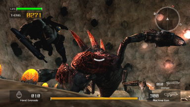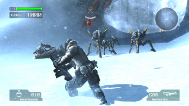 Taking a cue from the immense success of the Gundam arena fighters, Capcom decided to make their newest one and all-new IP on next-generation hardware. Has it become as popular as the Gundam games that have ruled the arcades recently? The answer is, yes. Like Red Dead Revolver, with Lost Planet Capcom essentially made a robust multi-player game with one hell of a single-player game. People say it's like Ghost Raccoon, and Capcom admits the influence of American first-person shooters, but they actually borrowed a few things from a host of their own arena fighters. Lost Planet is not an entirely new concept in itself; it's basically just a continuation of a sub-genre that Capcom started on the DreamCast hardware (with games like Spawn, Heavy Metal, and Power Stone 2) and then continued (albeit on life-support) on the PlayStation 2 and GameCube hardwares (with Onimusha Blade Warriors and Gotcha Force, respectively). Even back when they made Spawn, it was said that Capcom looked to create something with elements from first-person shooting games. The game wasn't very successful (in America), but at least they used it to pour the foundation for future arena battle games with an emphasis on firearms and explosives. Anyway, LP is often praised for being innovative, but the ingredients of its strangely alluring mix of features have been seen before. If I'm not mistaken, the roll and weapon systems are from Spawn, Bionic Commando pioneered the hook-shot, and manning war machines (like turrets) was one of Power Stone 2's most distinguishing features. Even the mechs look like something out of Steel Battalion, and more comparisons can be drawn from there. Not to say they didn't put anything unique in the game (the Data Post and T-Energy system are fresh), it's just that LP's most distinguishing features seem to be the most distinguishing features of past Capcom titles. LP attempts to repeat history, but falls short. The visuals are fresh and unique. Though they are photo-realistic, there are certain attributes of the characters that give them that distinct Japanese look (Luca and Yuri's designs, in particular), and it even borrows the grappling-hook Bionic Commando is known for. With the cool futuristic weapons and other gadgets, it's almost like the game was designed to be a testing ground of sorts for the new Bionic Commando (which has already been announced and shown at the time of this writing). The mechs, however, are clunky (for the most part) and feel less like the sleek machines you see in stuff like Gundam or Zegapain. The exceptions to this are Wayne's mech (which looks mean as hell in its final transformation) and a female boss mech (that actually has a curvaceous flair). At first glance, the graphics look awesome, with seemingly-boundless, intricately-detailed environments and equally-stunning enemies. Using the same graphics engine as Dead Rising and Devil May Cry 4, they really built on environmental interaction since their older DreamCast arena fighters (like Spawn and Heavy Metal), and there's a lot of stuff to use and/or blow-up. The animation in this game is difficult to gauge, though. At times it gets jerky for unknown reasons, and then it runs normally (yes, even in HD). It's subtle, but it's there, and it's not just limited to character animation; the backgrounds seem to do it a little, too. On a side-note, even with all the guns and explosions, there's no blood or body parts, but characters still show painful reactions to the powerful weapons (some of their death animations are actually sad to watch). There is a meaty 1-player mode, but 2-16 multi-player is probably considered to be the core of this game, and it's really a mixed-bag. On one hand, it can be really fun with fifteen other players on the battlefield, but then you got a bunch of lazy, bastard-ass, cheating motherfuckers who play in Elimination matches just to team kill with their friends. This alone makes true Elimination matches virtually impossible, limiting multi-player to the cooperative modes. It wasn't a big problem when the game released, but team-killing has grown exponentially, and hasn't gotten any better. Another thing I really don't like is when some random asshole just happens to re-spawn right in front of me and I get helplessly gunned just because he had invincibility. It always happens to me. Granted, the spawn invincibility was put into the game to avoid re-spawn-point camping, but still. Dudes just pop-up out of nowhere and you can't do anything but run your ass off and pray. Re-spawning in general takes too long, and should be quicker; seven seconds may not seem long, but it is when you got a post going down because some motherfucker from the other side was lucky-enough to have spawned by it. As if the multi-player wasn't frustrating-enough already...