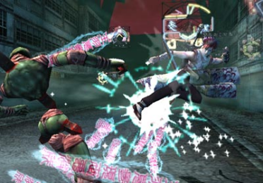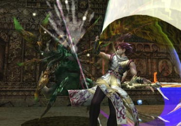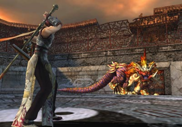 Of more interest is the sheer proportion of the stages, which is something Taito really deserves praise for. They're boundless, and filled with intricate detail that give them a real sense of depth; bright rays of light pour in through castle windows, buildings tower into the sky as far as the eye can see, and phantom mountains pertrude from the surface of the heavens. These details compliment the Chinese architecture to create some of the coolest stages in a PS2 action game. The Hong Kong stage (seen right) is the best; though it would have been cool to have seen the urban jungle populated by more than just monsters (even if only by bums and/or stray animals). Still not bad at all, though! By 2002, the "dude looks like a lady" fad was in full-force in Japan (with the US soon to follow), and everyone knew it wasn't dying out anytime soon. Taito saw this, too, and figured it'd be safe to use for the main character of their new game. They chose Gackt (who is apparently a male), a Japanese pop singer who fit the bill almost too well. If you thought Dante looked gay, this guy looks even gayer. And what's with the name "Gackt?" What the hell is it? It sounds like the kind of noise you make when you choke on something. Or when dogs choke on something... At first, the uni-sex design will probably put you off, but you get used to it after a while, and start to notice the intricate detail in his clothing. His swords look cool, too; (cooler than he does, actually); the ring one of the swords even sways from side to side as he runs! I'd say that he sports some of the best texture-mapping seen with the PS2 hardware. But just saying the enemy design is impressive, would be an understatement; there are hardly any bland ones in the whole game. Lumbering demons with spiked clubs, dudes rigged by spikes, and burrowing moles round-out the coolest enemies, but the huge bosses are even more impressive in their grandeur. They are incredible; absolutely monstrous, and a technical marvel that stands ultimately as a testament to Taito's long experience in the industry. While the main character Gackt was inspired by God-knows-what, the bosses all appear to be inspired by Chinese mythology, and as such resemble the type of eye candy you see in books. They definitely make my list of best-looking bosses seen on the PS2 hardware, ever. AI is another area the development team did a good job on. It is fitting, and there aren't many spots that will have you feeling downright cheated (unlike some other titles in the game genre). It's easy to see that Taito wanted everyone tp enjoy the game; the enemies are aggressive when they need to be, but still not overly-difficult to hit and combo. They also made it challenging to chain combos without making it nearly impossible (again, like some other titles in the genre). Bosses are a challenge, but never border on impossible (even though they have a god assortment of attacks and patterns). In the very important aspect of difficulty, they did a good job making it fun and enjoyable for everyone. |