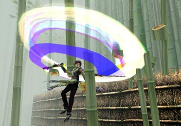 Where Capcom has always had a traditional approach to the action genre, and Konami an unorthodox approach, Taito has always been somewhere in the middle, but closer to Capcom's school. Bujingai came out a little after Devil May Cry 2, and its sword-slashing gameplay shows it. There are no guns in the game, and in an interview the game's producer says it was inspired by Honk Kong films, but several elements its sword-fighting action seem to have been influenced by DMC. In fact, I'd go so far as to say that the swordplay in this game is just as good (if not better) than in DMC. You have all the fancy swordplay from DMC here, but with some major differences in execution. Performance ranking seems is more forgiving than in DMC, yet challenging. First, the combo meter is more forgiving in this game than in DMC (thankfully), giving you enough time to do bigger combos. My highest was 151 Hits! Moves are linkable, and even though there are spells in the gamespells are alright, they aren't easily put into combos. Second is the flashy counter-attack system, which essentially allows you to gain the upper-hand by parrying an attack. There are different types depending on what type of attack is being parried, but the coolest is against enemies who have the same ability; you become locked in a choreographed duel as glitzy pyrotechnics erupt in the collision of blades. Not only do the fancy pyrotechnics and laser show look cool, but it's easy to perform, too. Did Capcom get the idea of the DMC parry system from this game? Third, running on walls is also easier than in DMC (where there's no room for error). And it's a good thing, because mastering it is essential for the parts where there are no platforms. The platforming parts are actually fun, and they're not annoying as hell (unlike a lot of other games in the genre)! Instead of falling once, dying, and going back all the way to the beginning of the stage, you fall and it starts you at the point you were last standing. Props to Taito for this. It may seem too easy from this description, but there are a few mean platforming parts that benefit from it. Gliding in this game is pretty cool, too (even if it could have been better with a shorter delay between the jump and the glide). It also goes hand-in-hand with running on walls. The levels are divided into sections, and you can plow through them or take your time and find all of the items. Lots of exploration and plenty of shit to break and collect. Aside form the typical health power-ups there are also hidden items like spells, bonus coins, and currency for power-ups. There are even parts where you cut bamboo in search of items. It becomes tedious, but it's still pretty fun, and it looks pretty cool, too. There may not be objects or interactive junk everywhere, but there's enough to have fun breaking. |