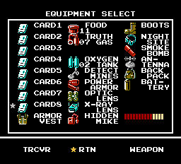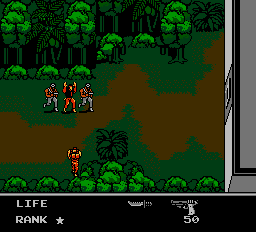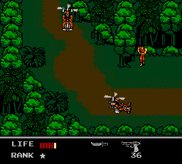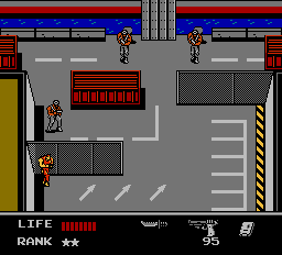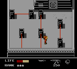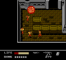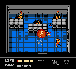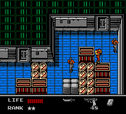 Snake's Revenge carries on the same unique formula of sneaking, hiding, finding, saving, and killing from its predecessor. Both games can be played more aggressively for a challenge, but the emphasis is on what has come to be known as "stealth." While not quite as good as action war games like Commando, Ikari Warriors, or Guerilla War, the breed of action in both Snake's Revenge and its predecessor is unique. Many think that the two titles owe their unique formula to "stealth" because few (if any) other games shared the concept of "stealth" at the time; true, the concept of "stealth" is an important element of the gameplay, but there is also heavy emphasis on finding weapons, using items, and saving hostages. There is also importance on using certain weapons and items at certain times; for example, using the thermal goggles to see normally-invisible laser motion-sensors. These things combined, Metal Gear was a good title that was unique and challenging for its time, and Snake's Revenge carries over the one thing that ties every entry in the series together: variation. Variation is a signature element of every entry in the Metal Gear series; each title is different, but the same. Varied gameplay is what has made the series popular since its 3-D debut with Metal Gear Solid. Like Metal Gear, obstacles such as moving bridges and platforms, spiked floors, motion detectors, and other stage hazards vary the running and sneaking gameplay of Snake's Revenge. In fact, one could even say that the motion detector laser and search light parts in the Metal Gear Solid series were directly influenced by that which Konami used first in Snake's Revenge. These obstacles, while annoying at times, provide a mix unique and fun unlike any other game in the genre at the time. But Konami put a lot into Snake's Revenge for the time; various actions such as location-specific radio communication and shooting flares trigger events needed to get through the game. There are even some parts where Snake needs to use explosives to destroy walls and uncover passages; these actions are what make Snake's Revenge a deeper game than its predecessor. Having come straight from Metal Gear, when I got Snake's Revenge I was stuck on the first stage for about a week because I didn't know that I had to make radio contact to trigger an infiltration scene! The first Metal Gear has parts that loosely resemble such events, but in the sequel they are more sensitive and complicated. Not that MG isn't a deep game, it's just that in SR triggered events are more refined. One of the things I liked most about Snake's Revenge was how everything was put together to form one cohesive experience; the game could be played straight through, without any hang-ups. Despite how good of a game the first Metal Gear is, it has undeniable issues; the worst thing is how certain parts of the game were pretty-much impossible; even after several months of playing the game nonstop, I still couldn't get through the bullshit desert and jungle mazes. Even with the compass item equipped, I still couldn't get through them! By far, some of the absolute worst areas I've ever seen in an action game. These areas don't slow progress to a steady crawl, no; progress stops completely. Mazes like that are bullshit; nobody wants to play something like that. Thankfully, in Snake's Revenge there are no cheap, confusing mazes with random outcomes to navigate through. Everything is straightforward, and the areas are structured-well.